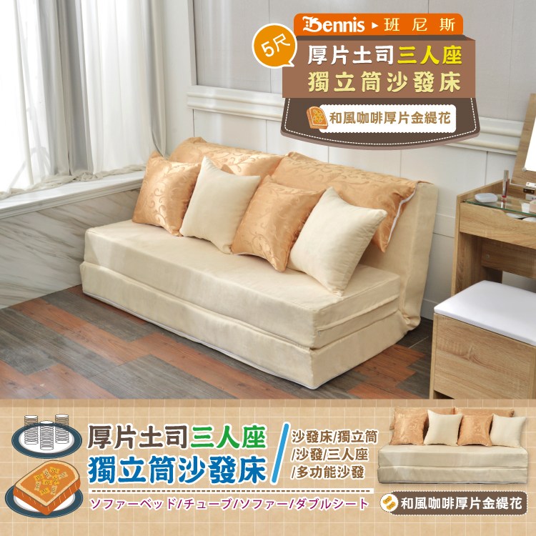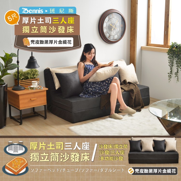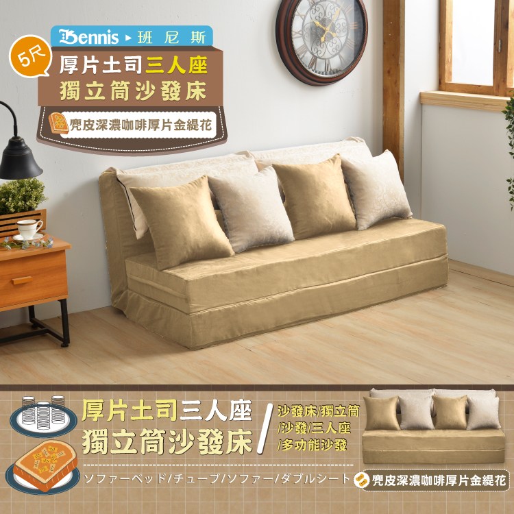 《班尼斯~居家新情人~厚片土司設計師~5尺雙人獨立筒沙發床》