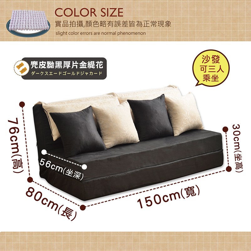 2、沙發尺寸:長 80 cm× 寬 150 cm× 高 76 cm、坐高 30cm、坐深 56cm