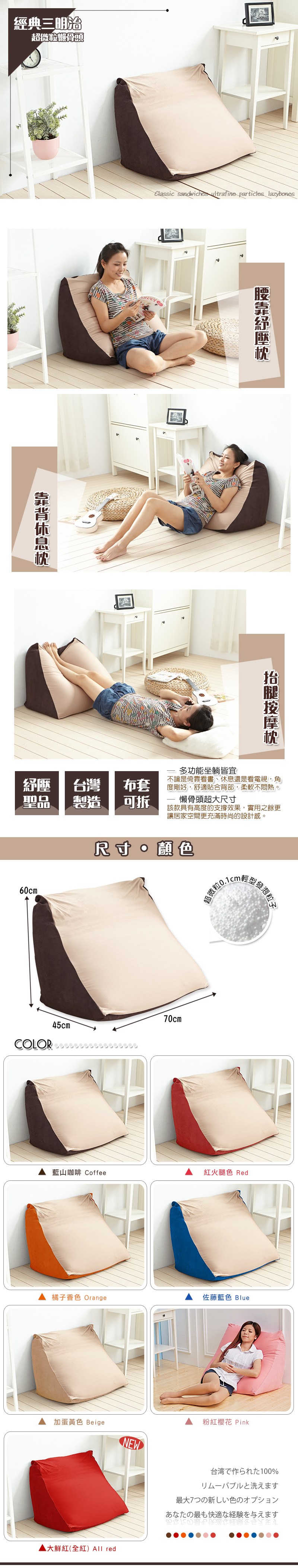 ~附原廠保證卡,品牌經營、品質有保障~●商品名稱: 超微粒發泡綿~經典三明治懶骨頭大靠枕/抬腿枕