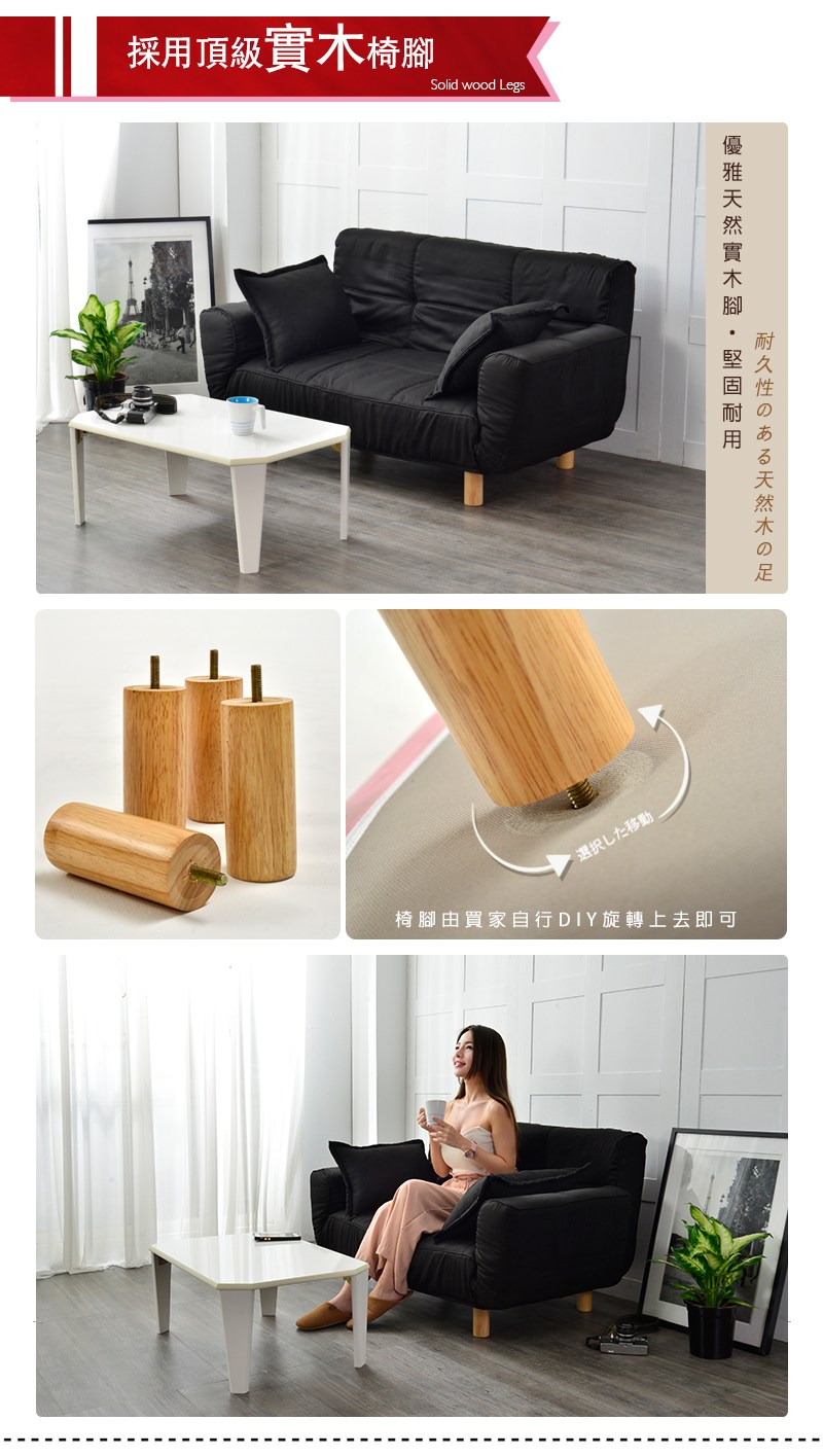 (十三)採天然實木椅腳,讓沙發顯得更加耐久實用,收到商品後由買家自行DIY旋轉上去即可。
