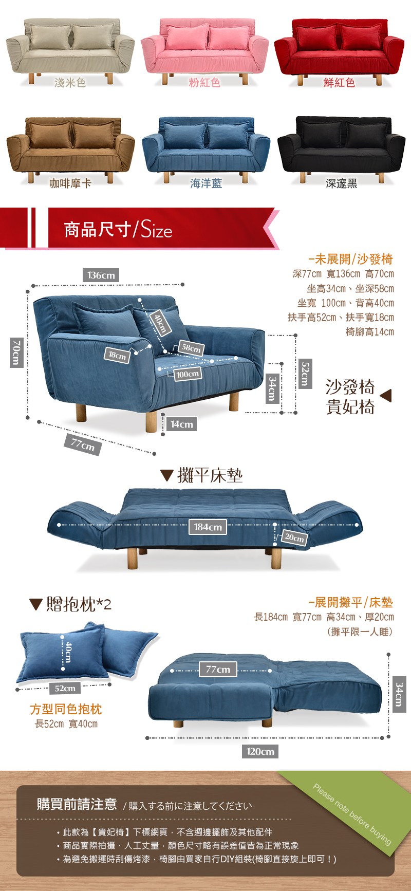 (四)沙發椅平舖時靠背部之靠墊亦可當頭枕使用、坐墊亦可折起當足枕使用。