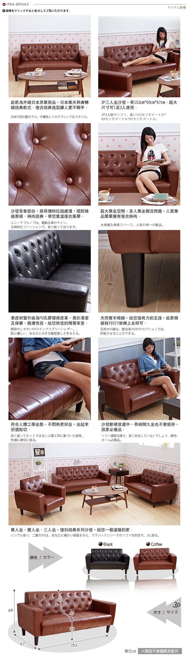 坐高34cm、坐寬125cm、坐深47cm、背高40cm - 顏色:咖啡 、黑色