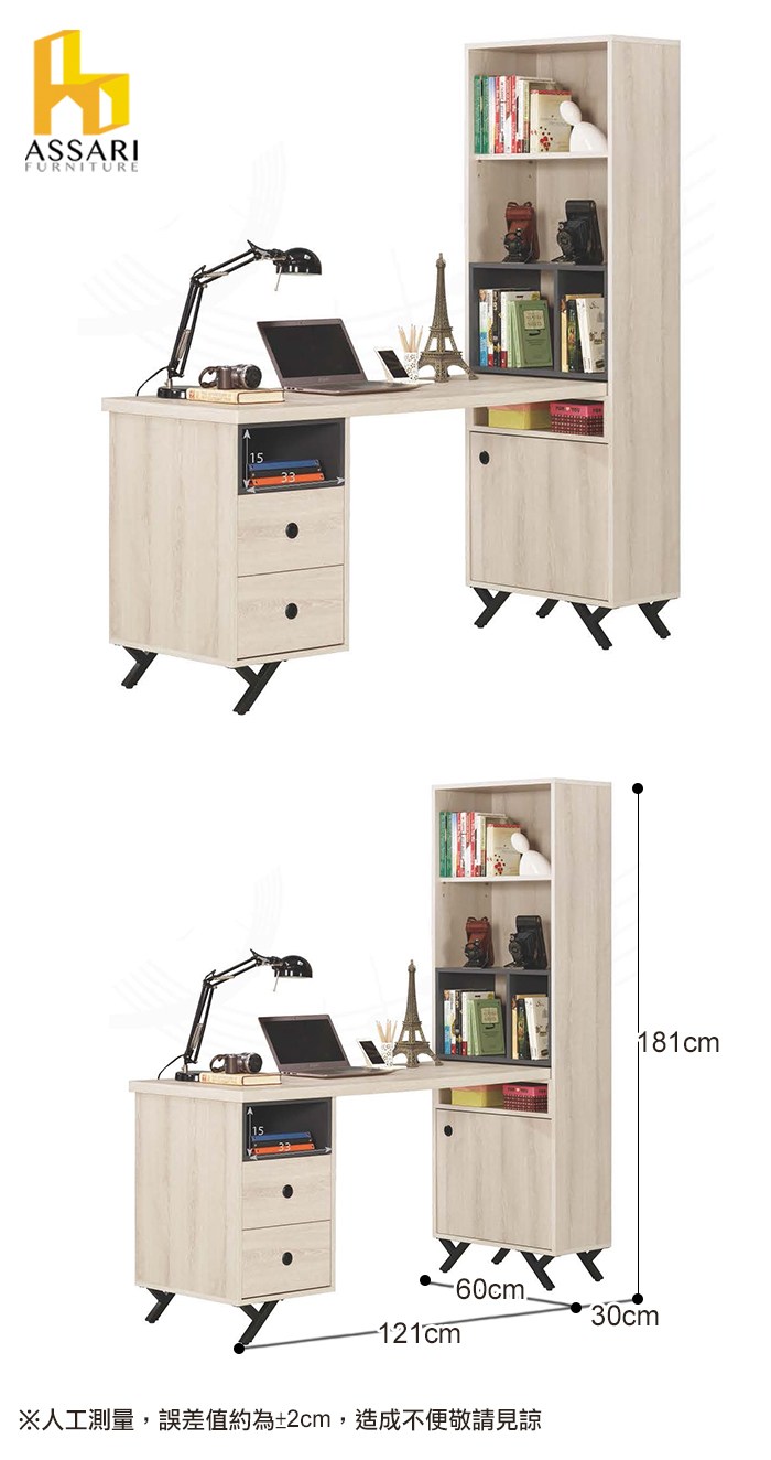 ASSARI-優娜5尺L型二抽書桌(寬151*深60*高181cm)