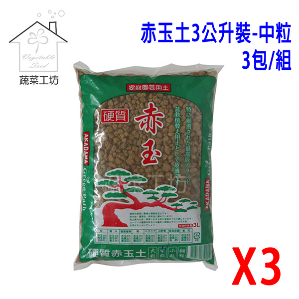 赤玉土3公升裝-中粒 (綠袋)*3包/組