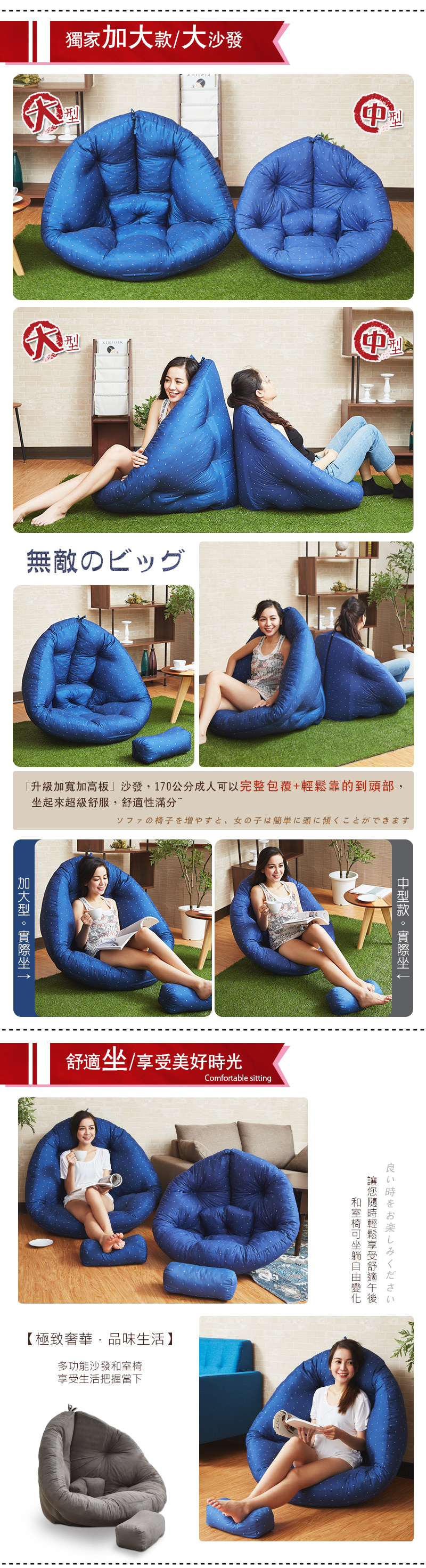 ●商品名稱:【班尼斯國際名床】‧超級無敵大【Mushroom日風蘑菇懶骨頭沙發】