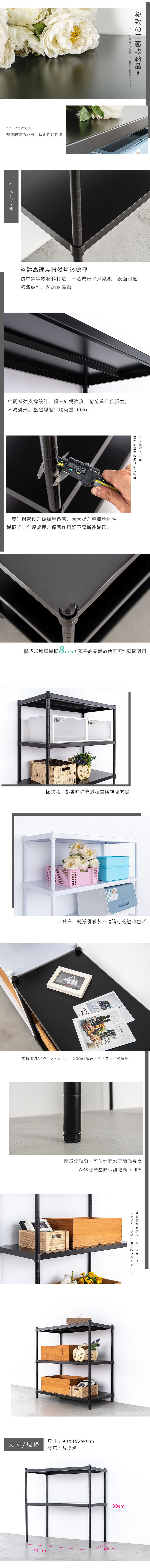 【dayneeds】輕型 90x45x150公分 四層烤黑波浪架