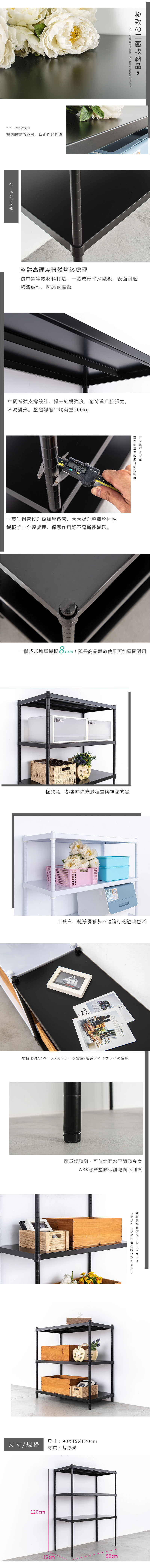 dayneeds 沖孔 90x45x180cm四層收納架(烤漆黑) 層架/置物架/儲藏架