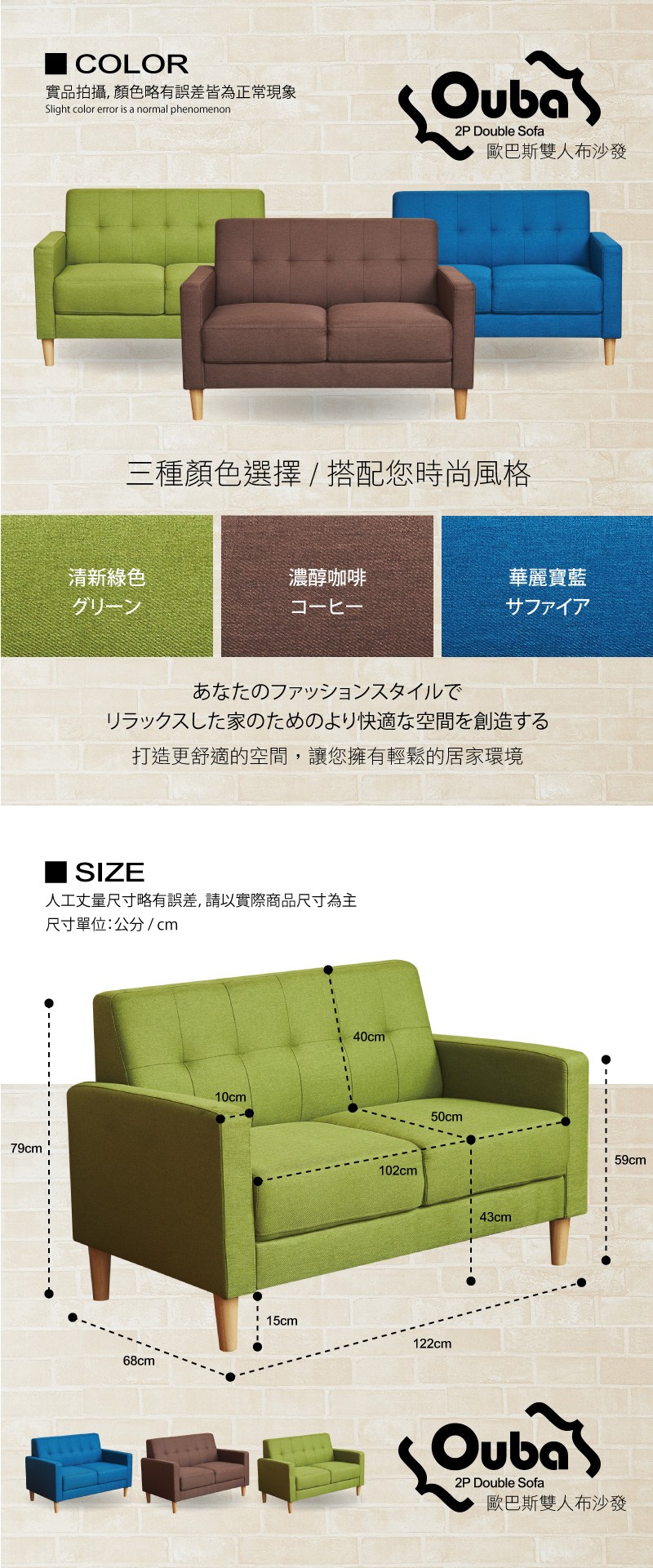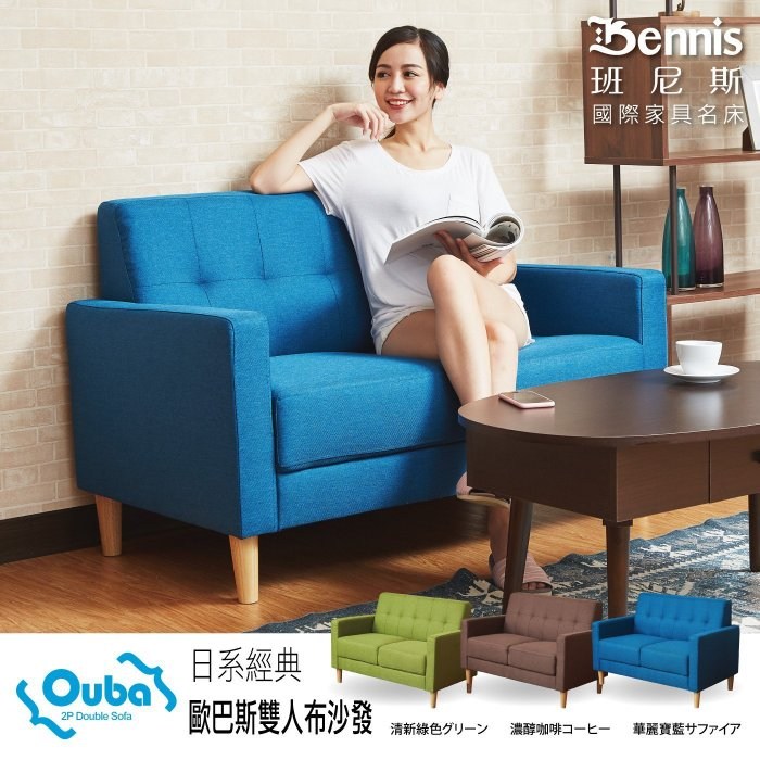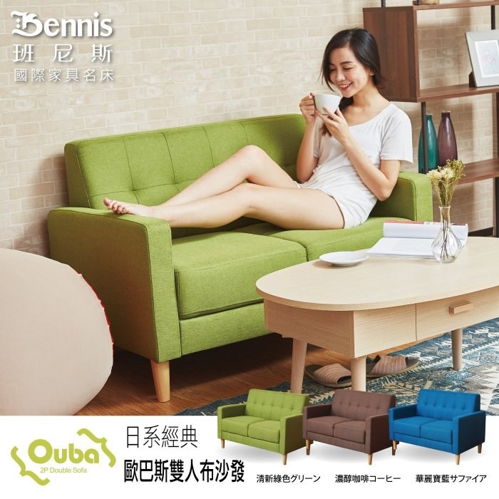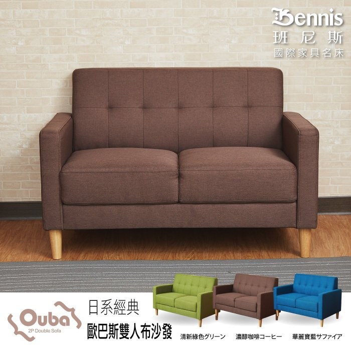 ●商品名稱:【班尼斯國際名床】~日本熱賣‧Ouba 歐巴斯 雙人布沙發/日系經典沙發/天然實木腳