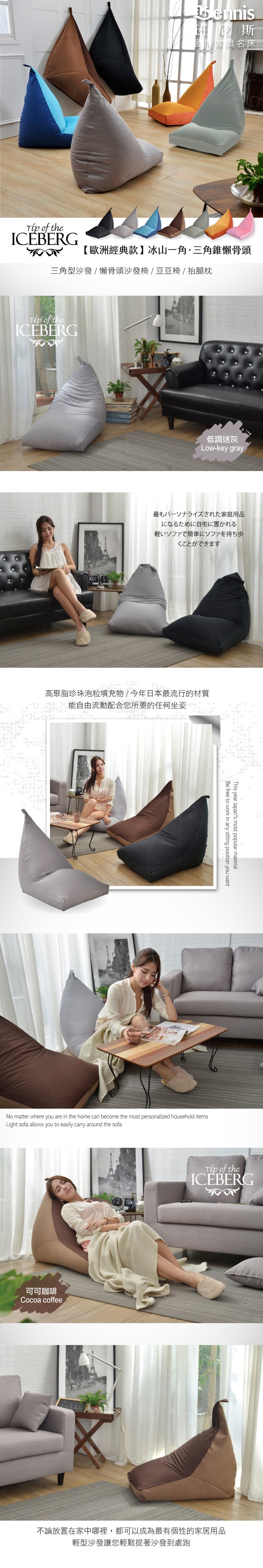 ●商品名稱【班尼斯國際名床】 歐洲經典款【冰山一角‧三角錐懶骨頭】三角型沙發/懶骨頭沙發椅/豆豆椅/抬腿枕