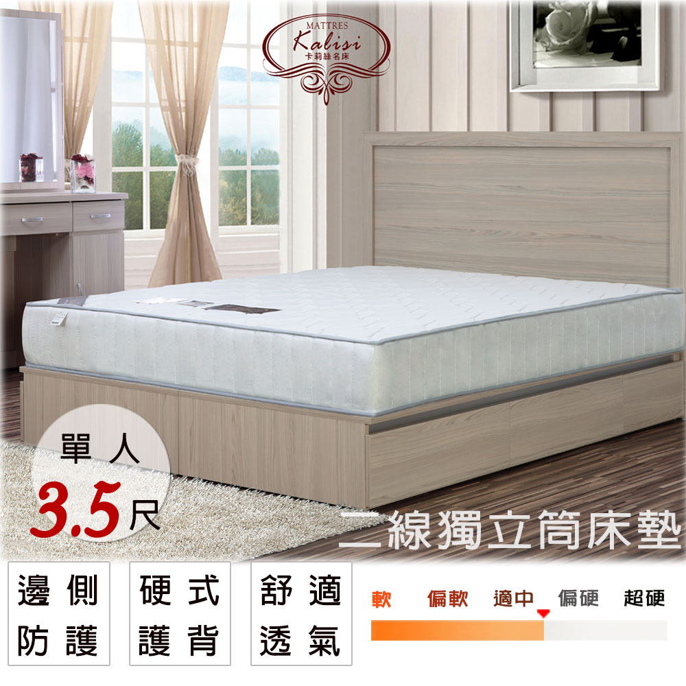 【UHO】卡莉絲名床-日式和風三線3.5尺單人硬式護背獨立筒床墊
