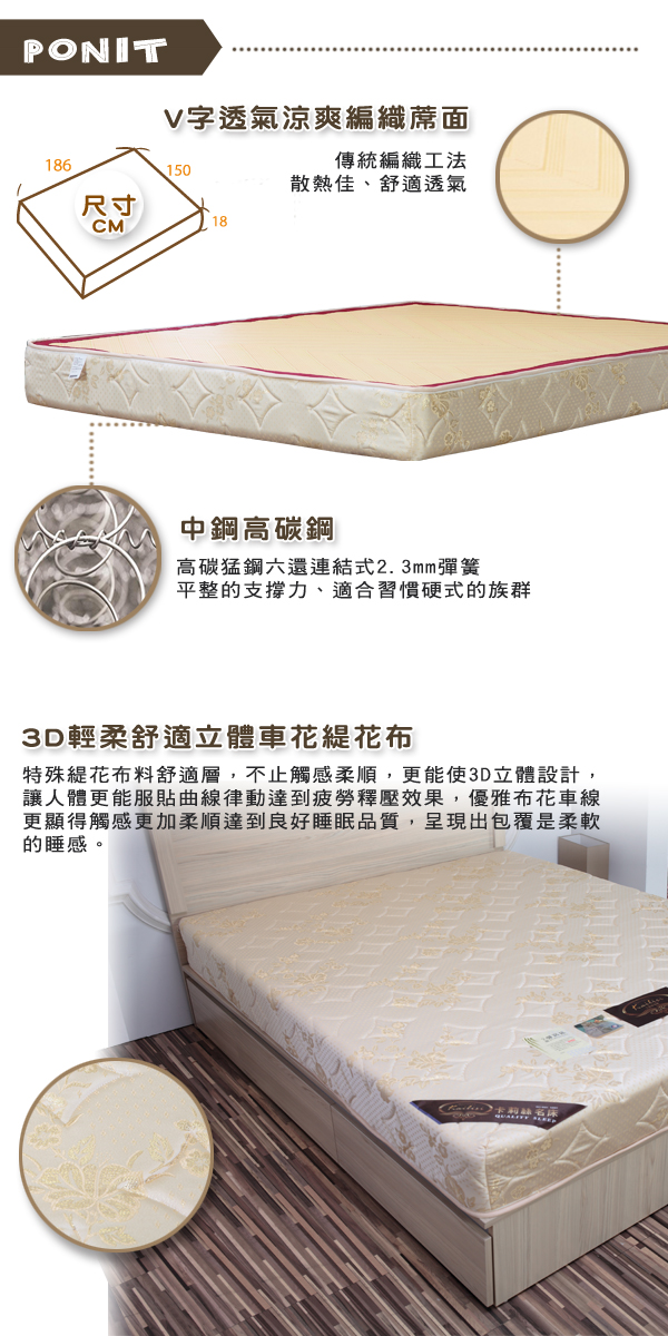 【KIKY】烏克蘭奈米石墨烯透氣硬式獨立筒床墊