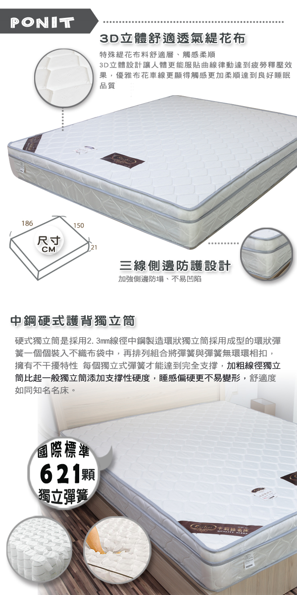 《新之森林》雅典多支撐蜂巢款獨立筒床墊-雙人加大6x6.2尺