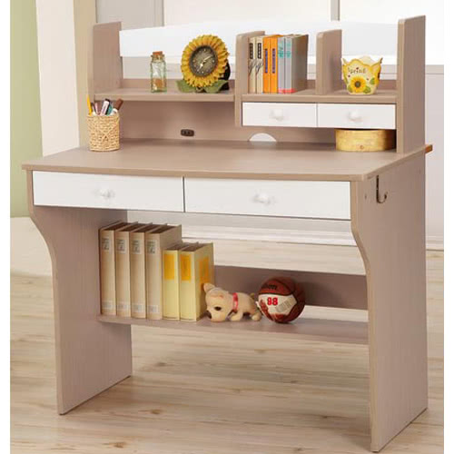 ■ 桌上附書架以及右方兩個文具收納小抽屜,可放文具等小物品,書架層板可擺放A4 SIZE教科書、課外書等讓您不必再另外買書架了!