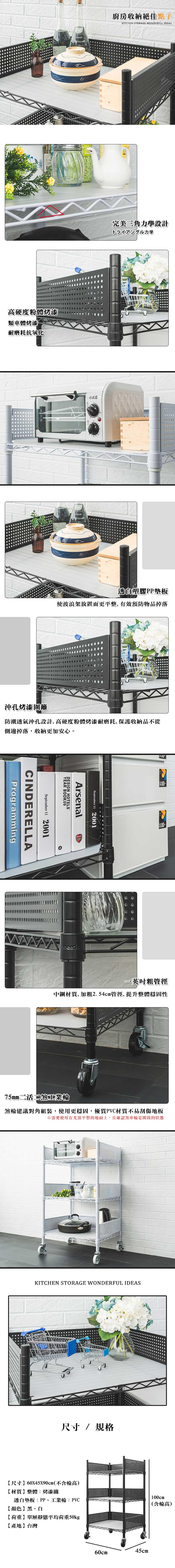 秘寶在這【dayneeds】輕型 60X45X90cm 廚房推車收納架白色
