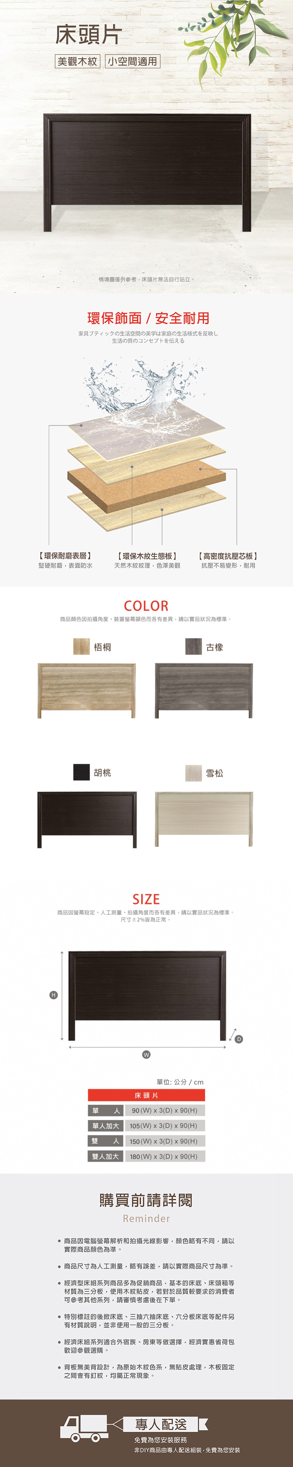 Homelike 喜家居雙人加大6尺貓抓皮實木床頭片(2221)-180x10x108cm