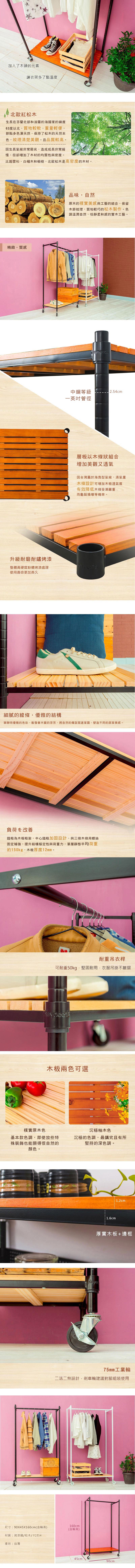 【dayneeds】松木 90x45x150公分 單桿烤黑柚木板附輪衣架