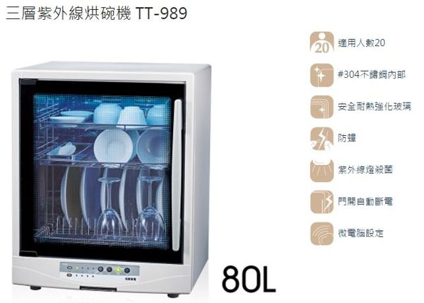 名象 微電腦三層紫外線殺菌烘碗機 TT-989~台灣製