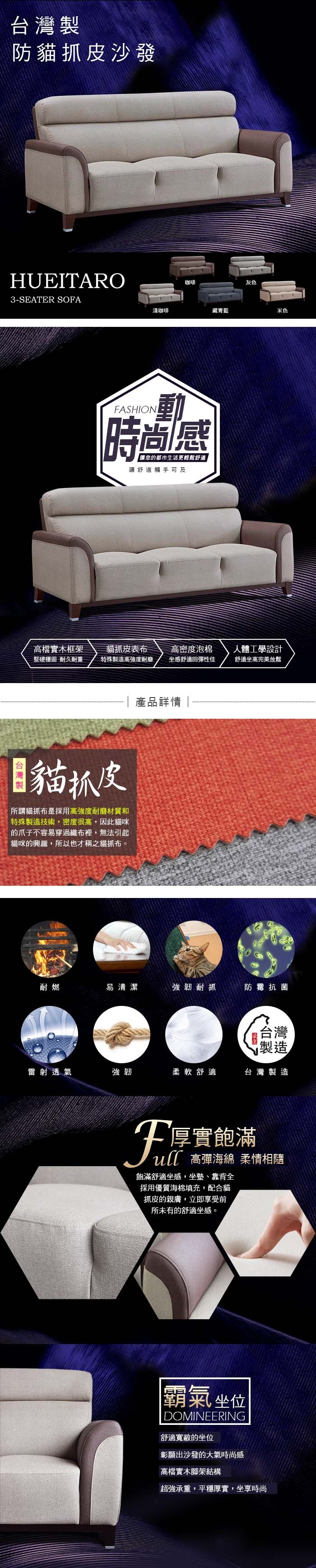 【UHO】F10-無扶手 貓抓皮三人沙發(運費另計)雙色