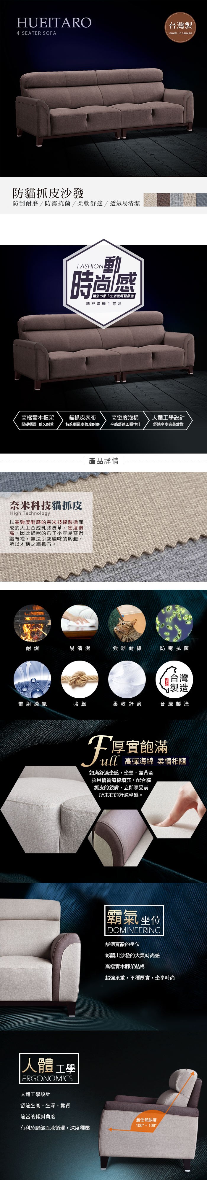 【本木】MIT台灣製 夏洛特強韌耐刮貓抓皮4人坐沙發+腳繭米色#6702+晨
