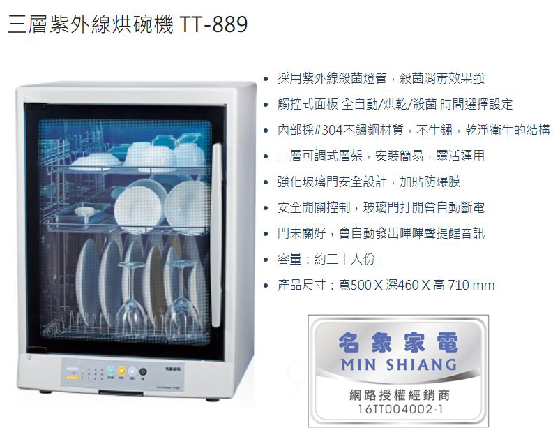 MIN SHIANG 名象紫外線殺菌烘碗機TT-889~台灣製