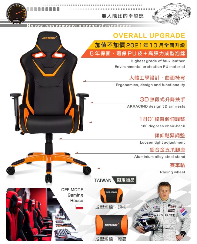 ◆ 世界品牌AKRACING,No.1超跑電競椅