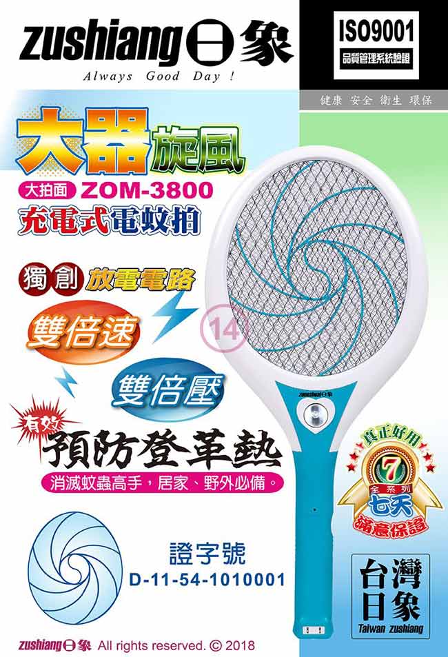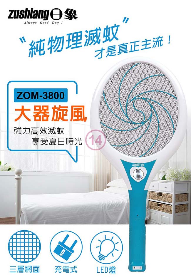 日象 大器旋風充電式電蚊拍 ZOM-3800