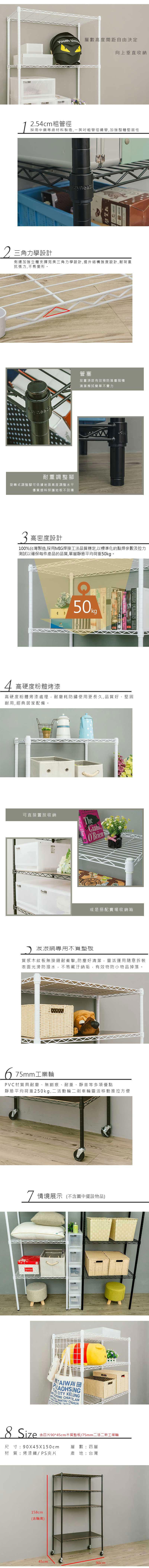 【居家cheaper】厚鐵框45X90X216CM四層推車厚鐵框45X90X216CM四層