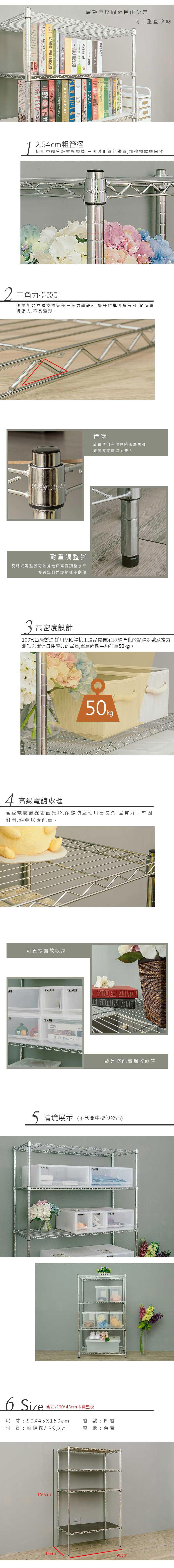 Homebox MIT 高耐荷重型 烤白 多層鍍鉻四層架 90*45*180cm 單層荷重150KG
