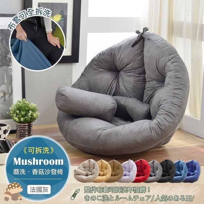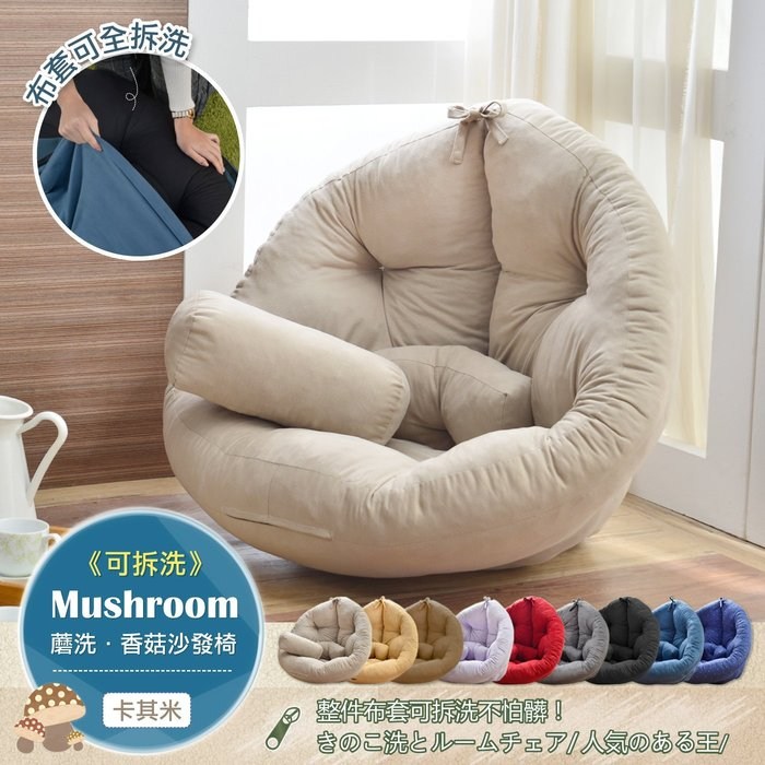 | 品名 | 【Mushroom日風-蘑洗‧蘑洗‧香菇懶骨頭可拆洗沙發】(附一顆小抱枕) |