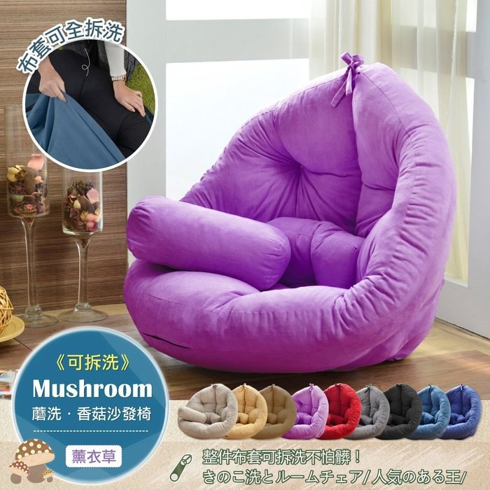 【班尼斯】蘑洗蘑洗‧可拆洗香菇創意懶骨頭沙發床系列(不需靠牆即可使用)薰衣草