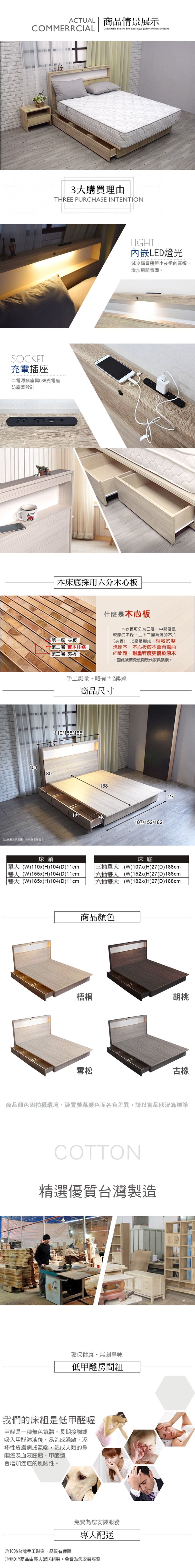 傢俱工場-吉米 MIT木心板床組 (插座床箱+床底+獨立筒墊) - 單大3.5尺梧桐