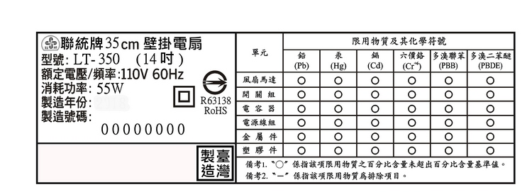 LIEN TUNG聯統14吋單拉掛壁扇 LT-350~台灣製造