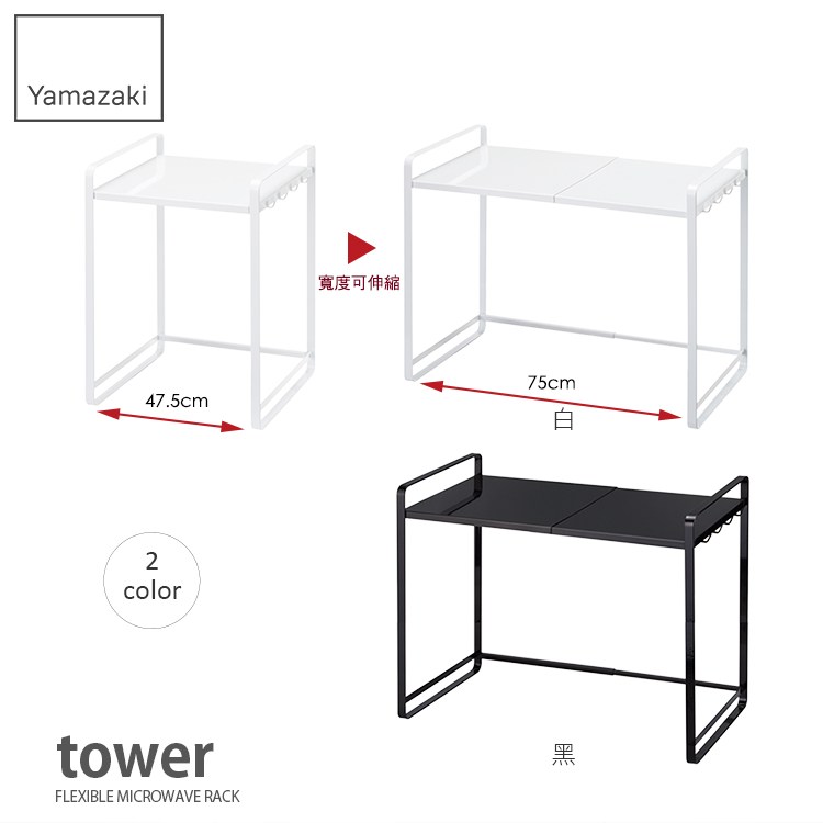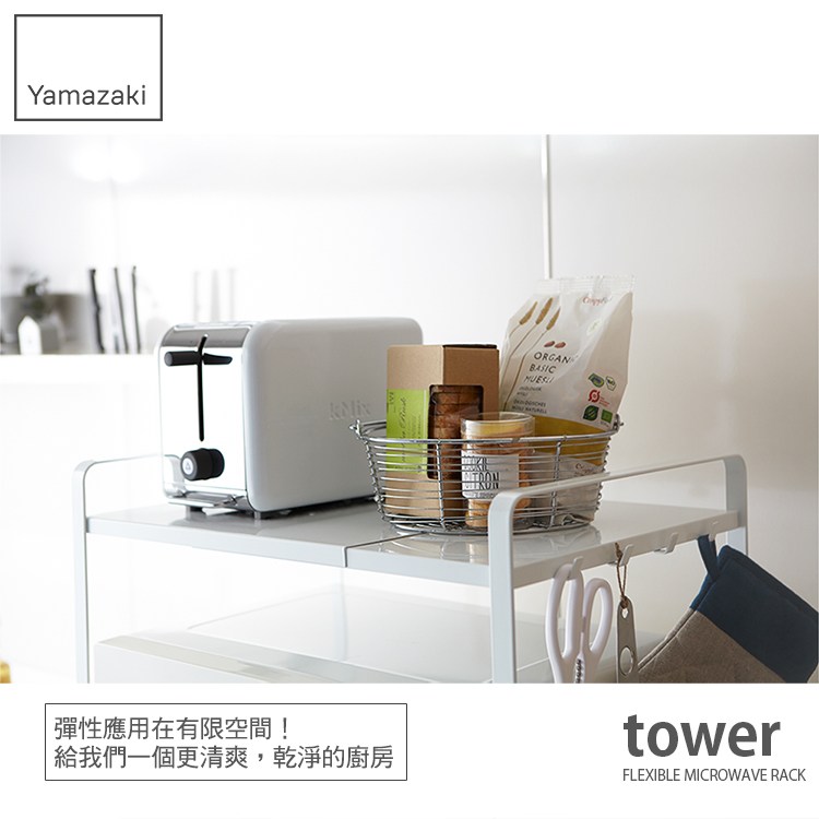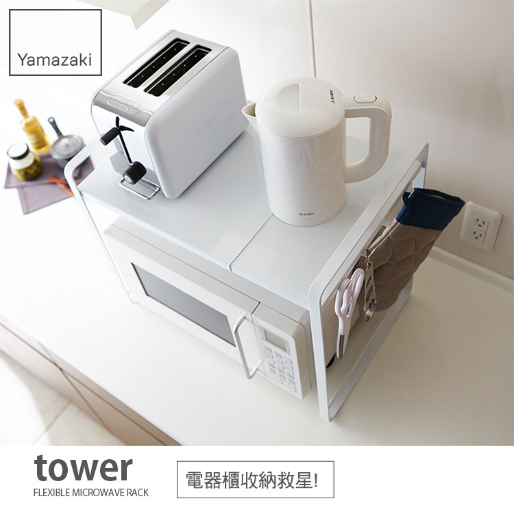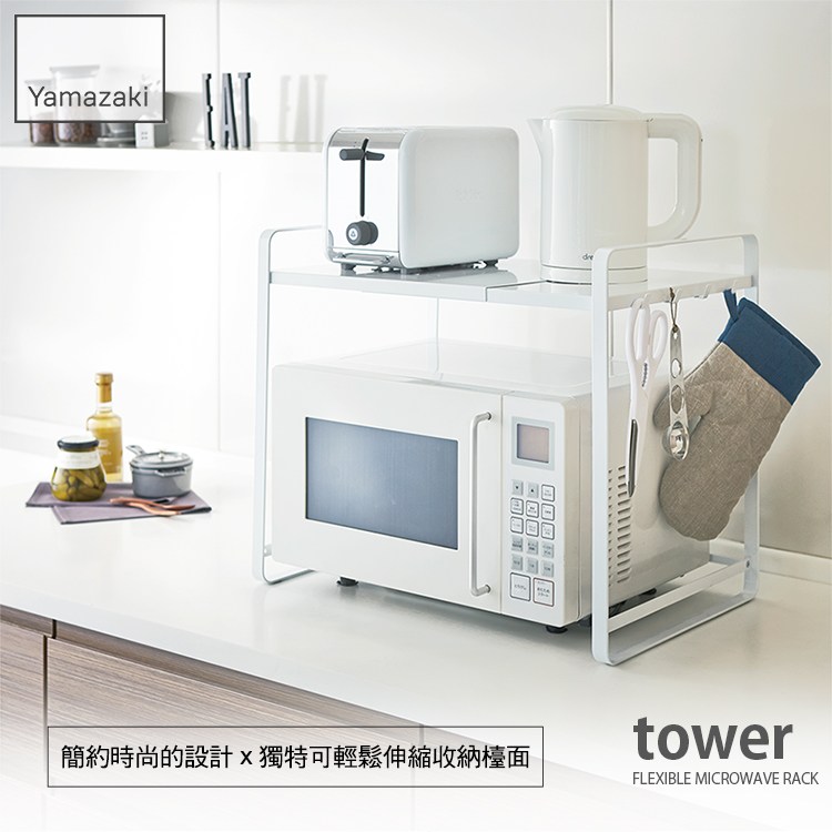 日本【YAMAZAKI】tower伸縮式微波爐架(白)