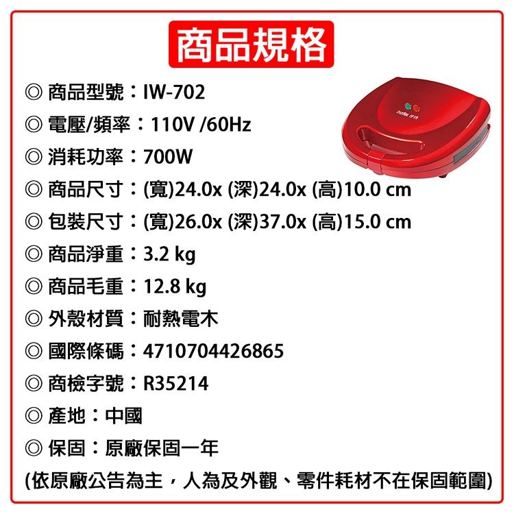 imarflex伊瑪 5合1烤盤鬆餅機 IW-702