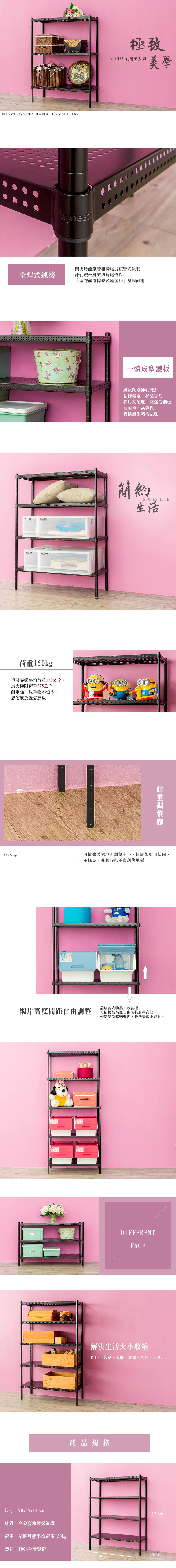 【dayneeds】極致美學 90x35x150公分四層烤白沖孔層架