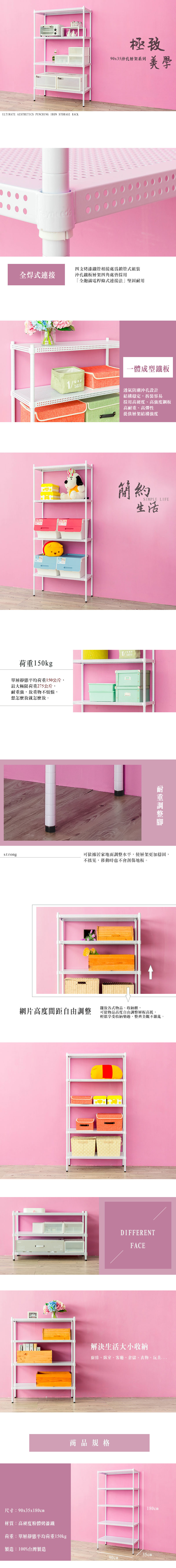 點我下載【dayneeds】極致美學 90x35x180公分五層烤白沖孔層架