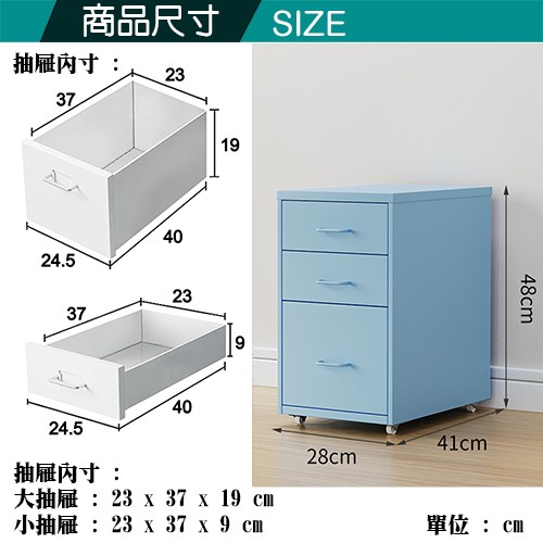 一大二小抽屜的設計,實用性佳,能 容納A4尺寸的物品,可依需求收納在大抽屜或小抽屜內,底下附有 四個活動滾輪,方便您隨心所欲的移動到需要使用的地方,文件櫃、收納櫃、工具櫃、床頭櫃、側邊櫃,收納紙本、報章雜誌、遙控器、3C充電器、鑰匙、手工具、文具、貼身衣物或飾品領巾領帶等都很適合。