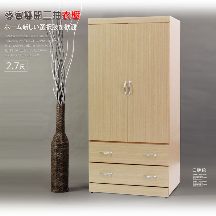 衣櫥【UHO】麥客2.7尺雙開二抽衣櫃-白橡色