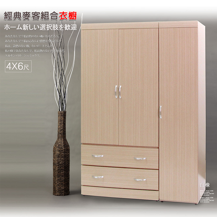 衣櫥【UHO】經典麥客4X6尺組合式衣櫥-白橡色