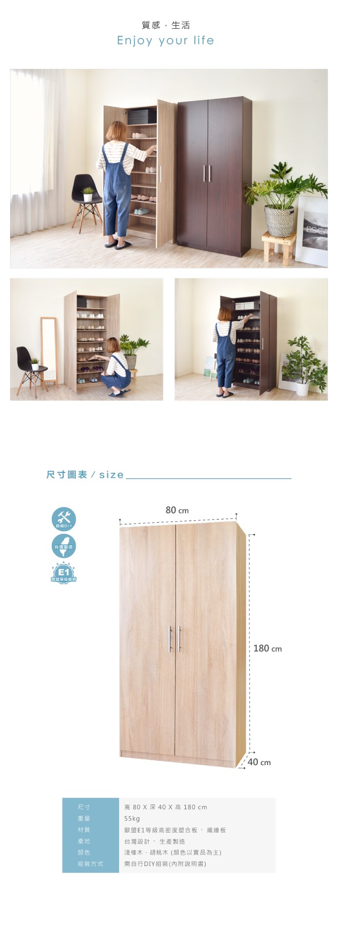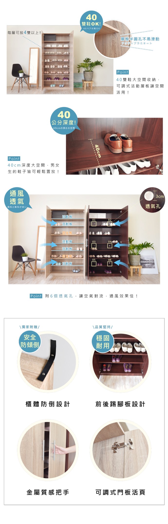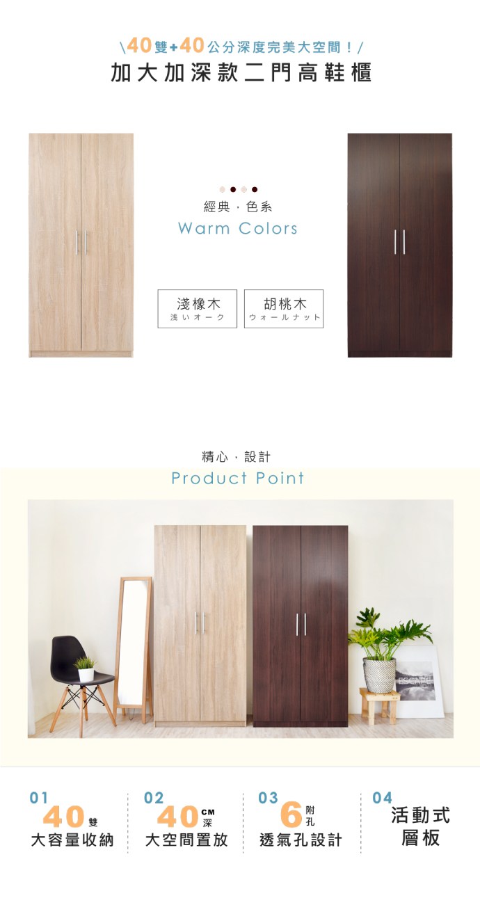 《HOPMA》加大加深款二門高鞋櫃 台灣製造 玄關櫃 收納櫃 邊櫃 透氣 通風 鞋架-胡桃木