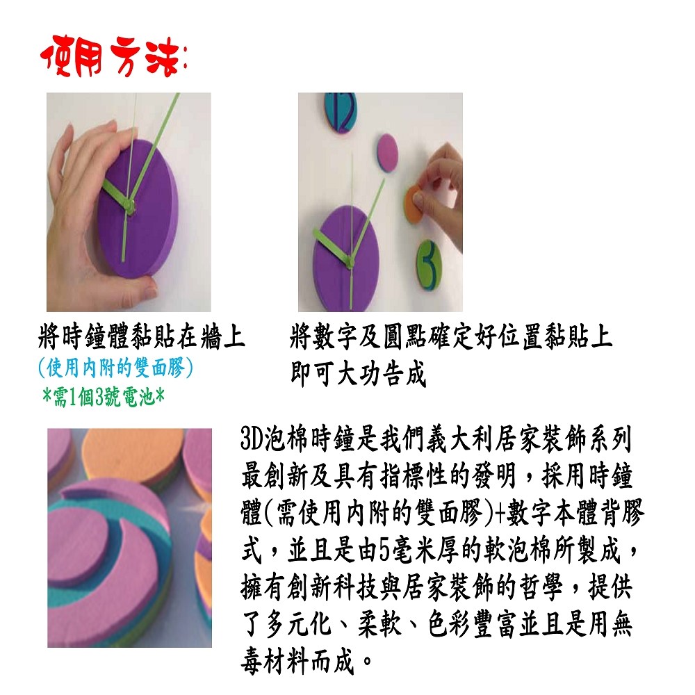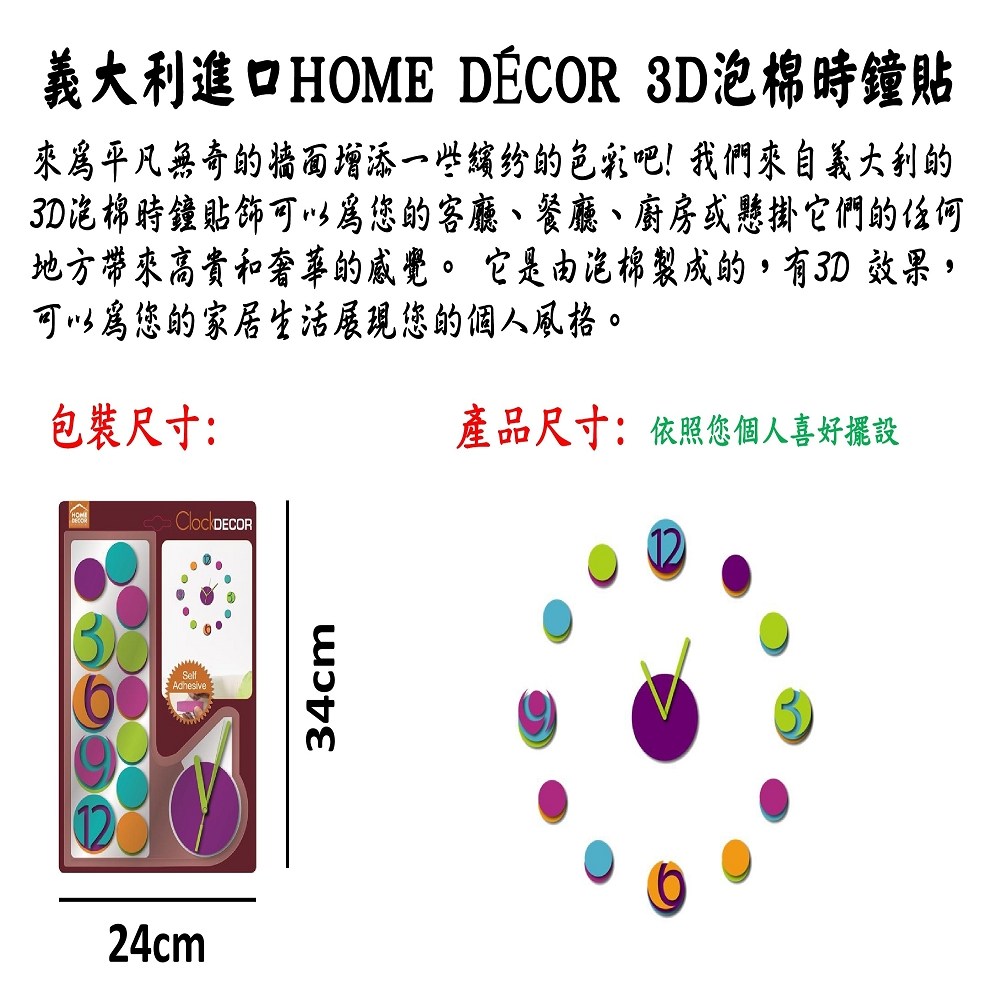 此款【義大利HOME DÉCOR3D泡棉時鐘貼飾 意象C54804A/繽紛C54801】結合壁貼與時鐘的美型壁鐘.任由您發揮巧思黏貼出屬於個人的創意壁鐘。