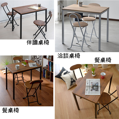 《C&B》古木調北歐風萬用桌椅組(一桌+二椅),桌與椅的主體結構皆採用 結構穩固的鐵管製成,桌與椅的特點如下: