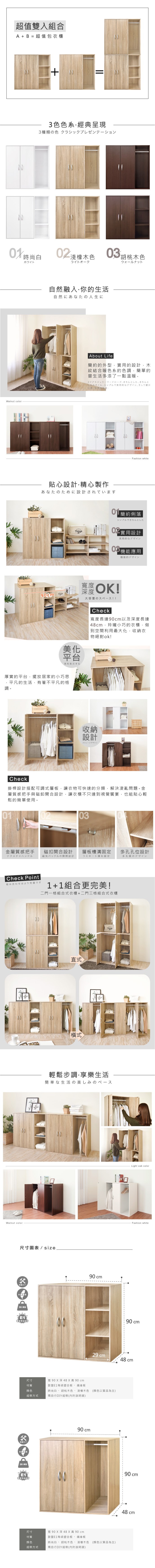 《HOPMA》美背二門一格組合式衣櫃 台灣製造 衣櫥 收納櫃 衣物收納櫃-淺橡(漂流)木