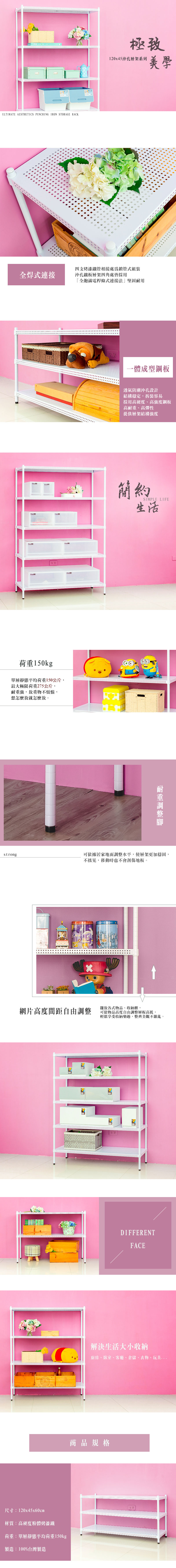 [客尊屋]粗管/沖孔/45x120x120hcm 白騎士沖孔 五層架白騎士
