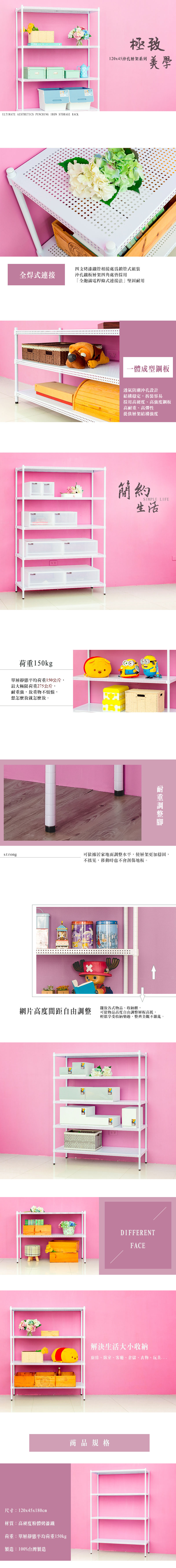 【dayneeds】極致美學 120x45x180公分四層烤白沖孔層架