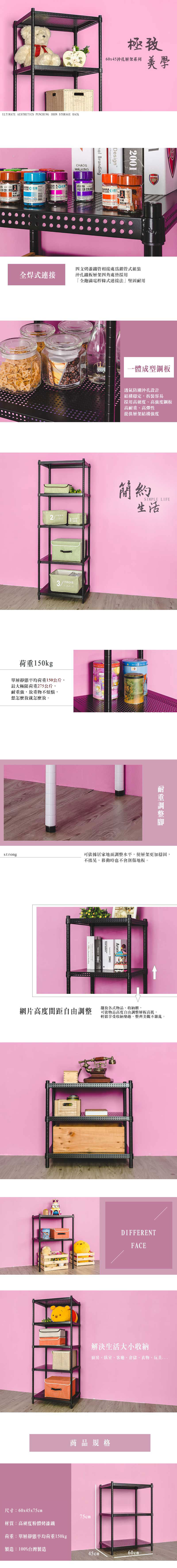 dayneeds 沖孔 90x45x180cm四層收納架(烤漆黑) 層架/置物架/儲藏架