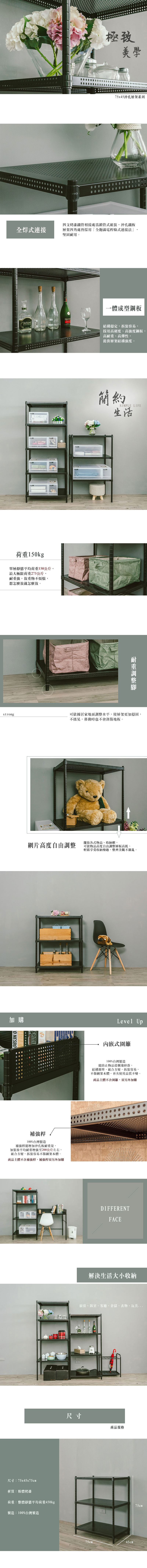【dayneeds】極致美學 75x45x75公分 三層烤黑沖孔層架