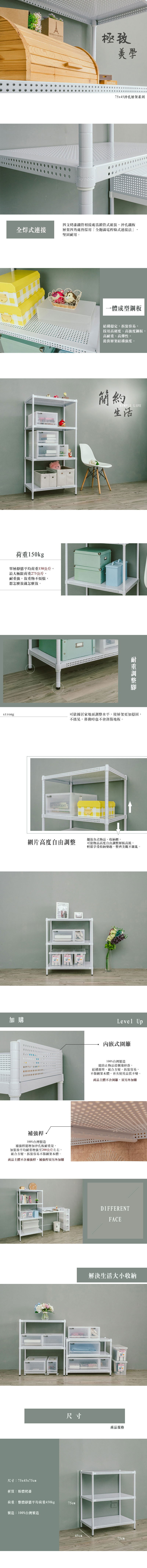 dayneeds 日需百備 極致美學烤漆架 沖孔鐵架 收納層架 展示架 層架 鐵架 含圍籬三組 1個 白色 60 x 45 x 150cm 4層