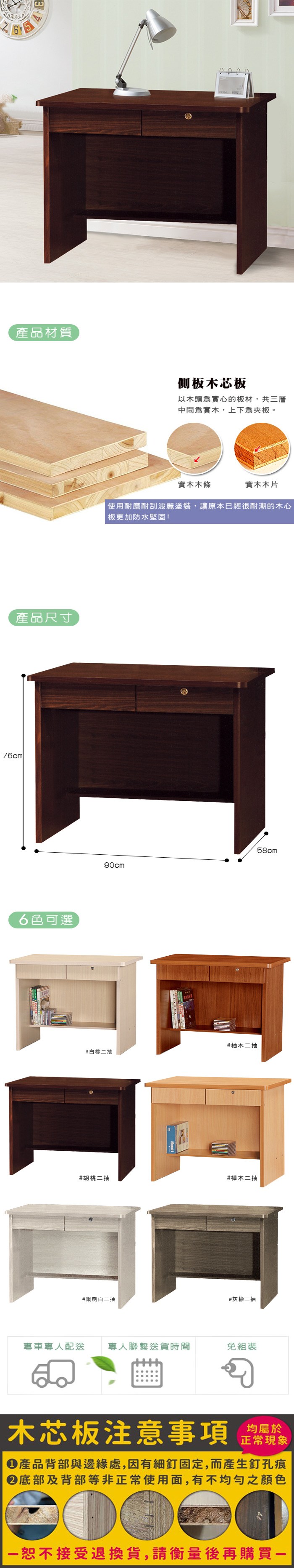 AS DESIGN雅司家具-卡爾2.7尺兩抽木芯板胡桃色書桌-78.4x39x77cm(四色可選)