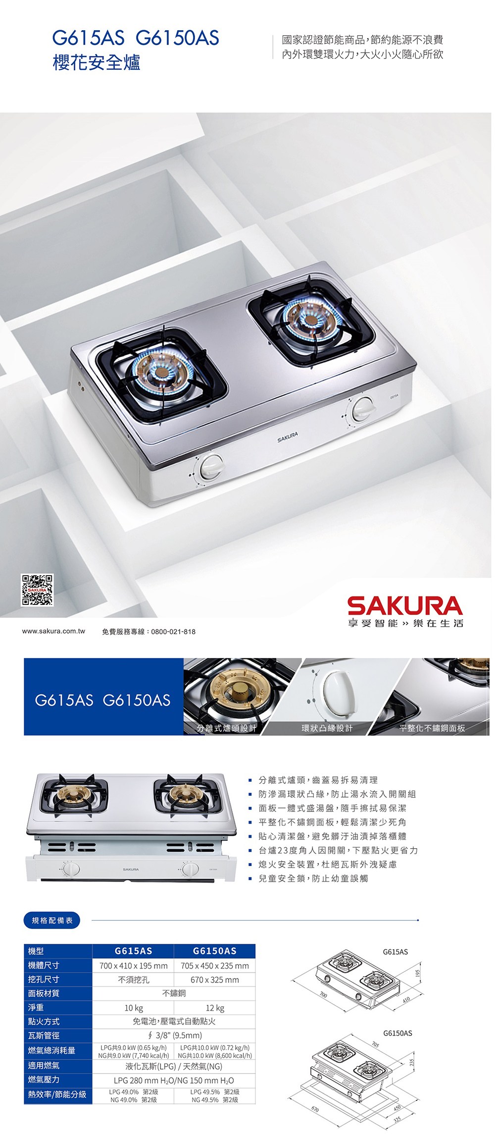 櫻花 智動關雙炫火安全爐 (左邊防乾燒) 瓦斯爐 台爐 G5920ASN 天然氣